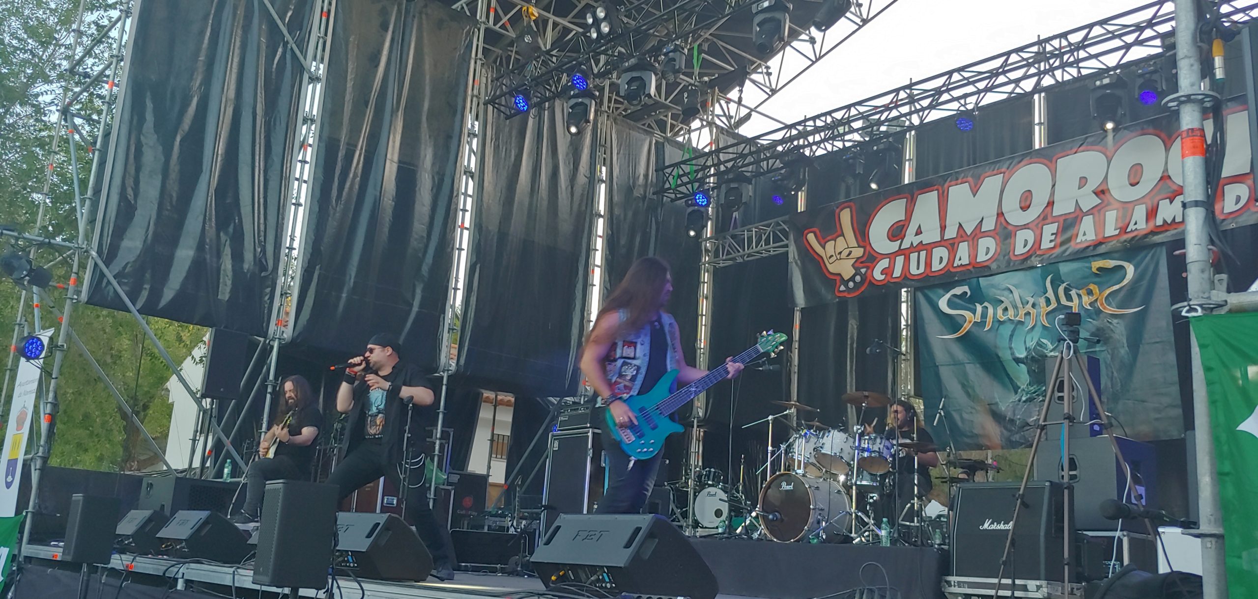 Después de una pausa de hidratación obligatoria, turno para los gaditanos SnakeyeS. Precisamente, ya los ví en la edición del 2016 y en esta ocasión tampoco defraudaron a base de heavy metal de corte clásico (Accept, Judas Priest), y así fueron cayendo grandes temas como «Shadow Warrior», «Metal Monster», «Evolution», etc.