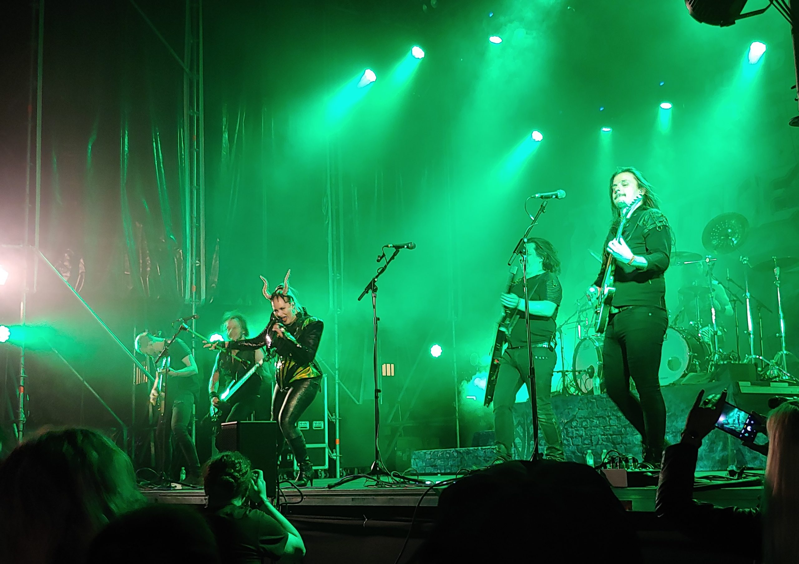 Ahora sí, Battle Beast se preparaban para salir y empezaba a sonar la intro de «Circus of Doom», canción y título de su último disco, y si ya el resto de grupos sonó de escándalo, los finlandeses elevaron el nivel aún más todavía. Y lo de Noora Louhimo es que no existen palabras para describir semejante voz, hasta los grillos de los alrededores cayeron rendidos ante tal «bestia». Pues ahí estábamos todos, atónitos y disfrutando como niños chicos, tema tras tema, repasando todos sus discos. Cómo sonaron «Armageddon», «Eye of The Storm», «Bastard Son of Odin», «Master of Illusion», «Beyond the Burning Skies» y todas. Conciertazo memorable y pedazo de festival. El año que viene va a ser muy, muy difícil superar a este. Enhorabuena Camorock.