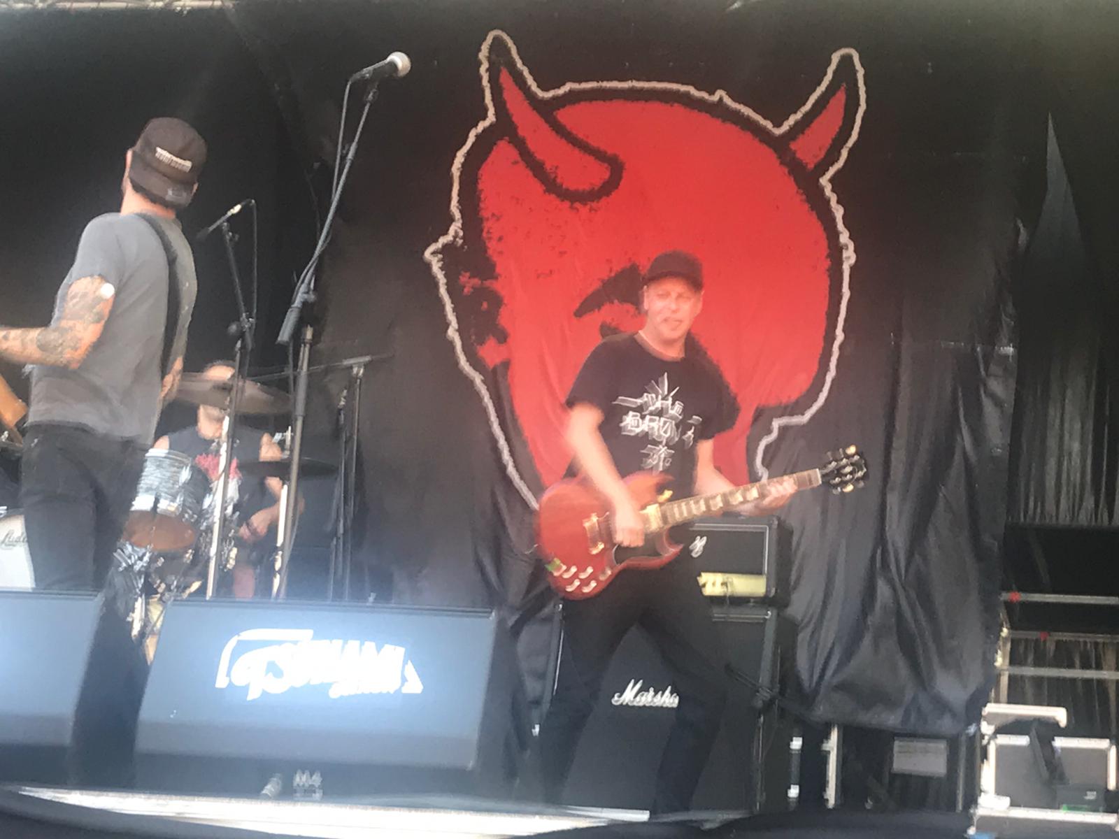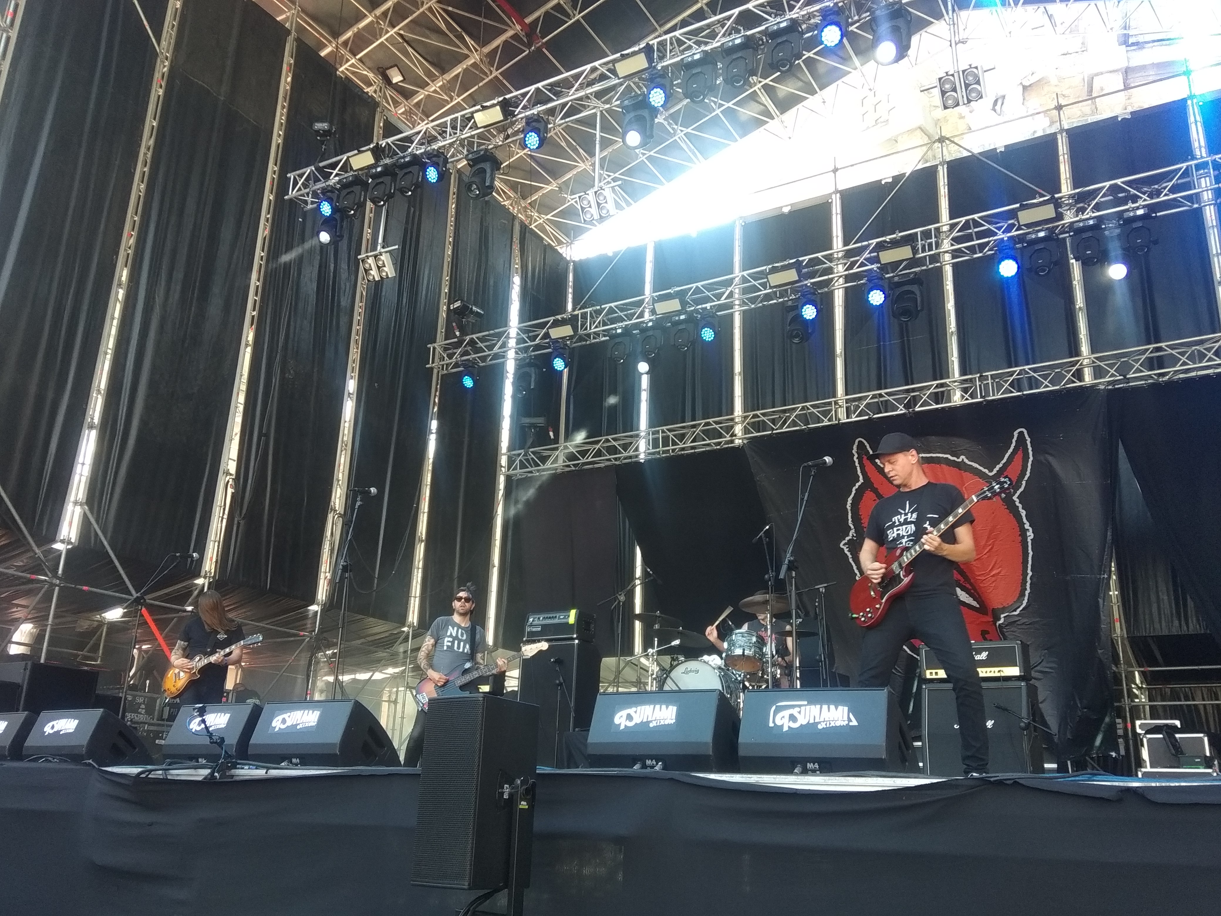 Esperemos que el año que viene vuelvan los food trucks. Fijaos cómo se quejaría la gente, que al día siguiente en redes sociales dijeron que se podía llevar comida de casa. También pusieron el sábado unas mesitas aparte de la barra de comidas para vender bocadillos. Pero sigamos con lo que importa, los conciertos. Escuchamos un poco de Atomic Zeros en el escenario Jagermeister, pero con el rollo de la tardanza de las comidas no nos dio tiempo de mucho, y cuando terminamos de comer ya era hora de cambiar de escenario.
