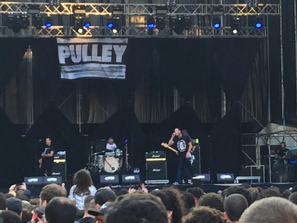 Tras ellos, camino del otro escenario a ver a The Lizards…bueno, ver exactamente no vi mucho, me puse por detrás y tampoco vi demasiado, pero los escuché, que es lo importante. Había muuuuucha gente, pero así aproveché para no meterme en todo el jaleo, escucharlos de tranqui y pedir alguna cervecita en la barra de al lado, que aún quedaba mucha tarde y mucha noche. Como el siguiente grupo no me gustaba mucho aproveché para ser sociable y charlar con los amigos, tomar algo tranquila, ir al baño, esperar a otros amigos que tenían que llegar… en fin, y hacer tiempo para Pulley, que estaba deseando verlos y tocaban en el escenario Miau, el principal (no se llamaba así, pero yo es que a esa marca de cerveza la llamo así…Manías). Para mí eran uno de los platos fuertes, y para mucha gente por lo que he leído por ahí, así que tenía muchas ganas. Qué motivación la gente, cuánto crowdsurfing, pero no tanto como al día siguiente, ejem,ejem…ya os contaré luego. Vamos, que estuvieron geniales y nos lo pasamos todos muy bien. Se nota que había ganas de que volvieran a España después de tanto tiempo.