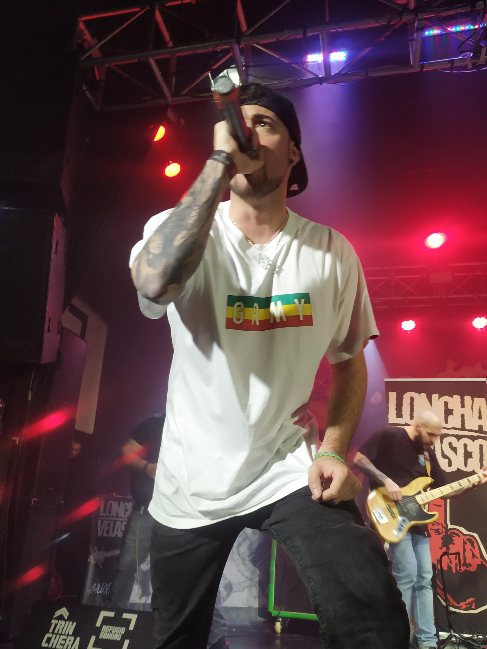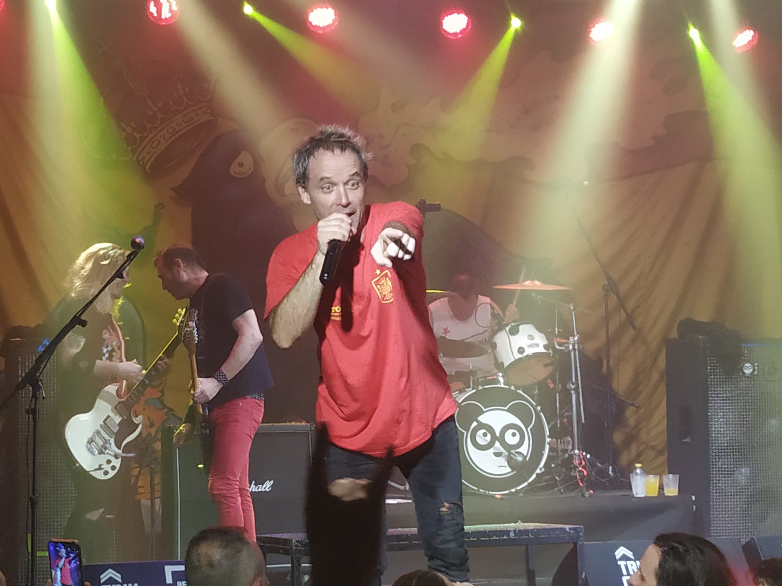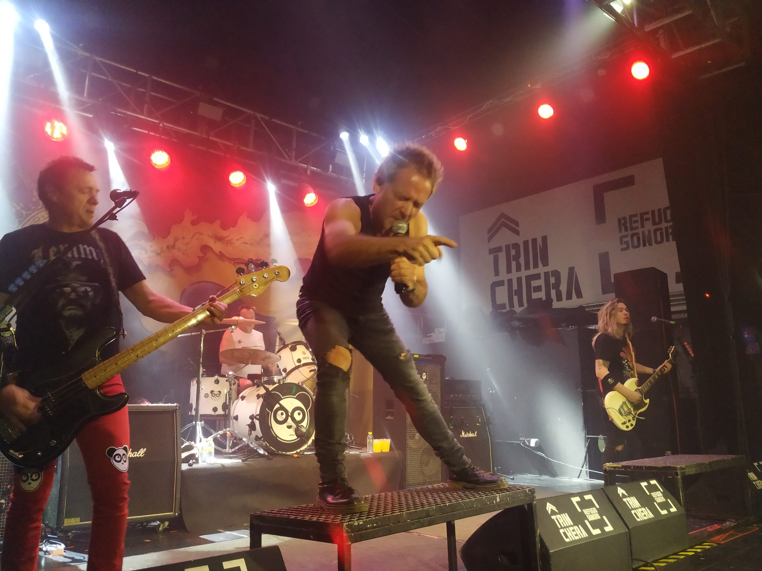 Aitor Ibarretxe su cantante, estuvo más que activo durante toda su actuación, ya casi desde el principio se bajó al público micrófono en mano, ofreciendoselo a todo el que lo agarraba, toda la primera fila puede decir que cantó alguna estrofa en algún momento de la noche. “Cómeme la franja de gaza”, “Speed Light” o “Cerveza sin alcohol” hacían las delicias de la gente que prácticamente llenó La Trinchera.