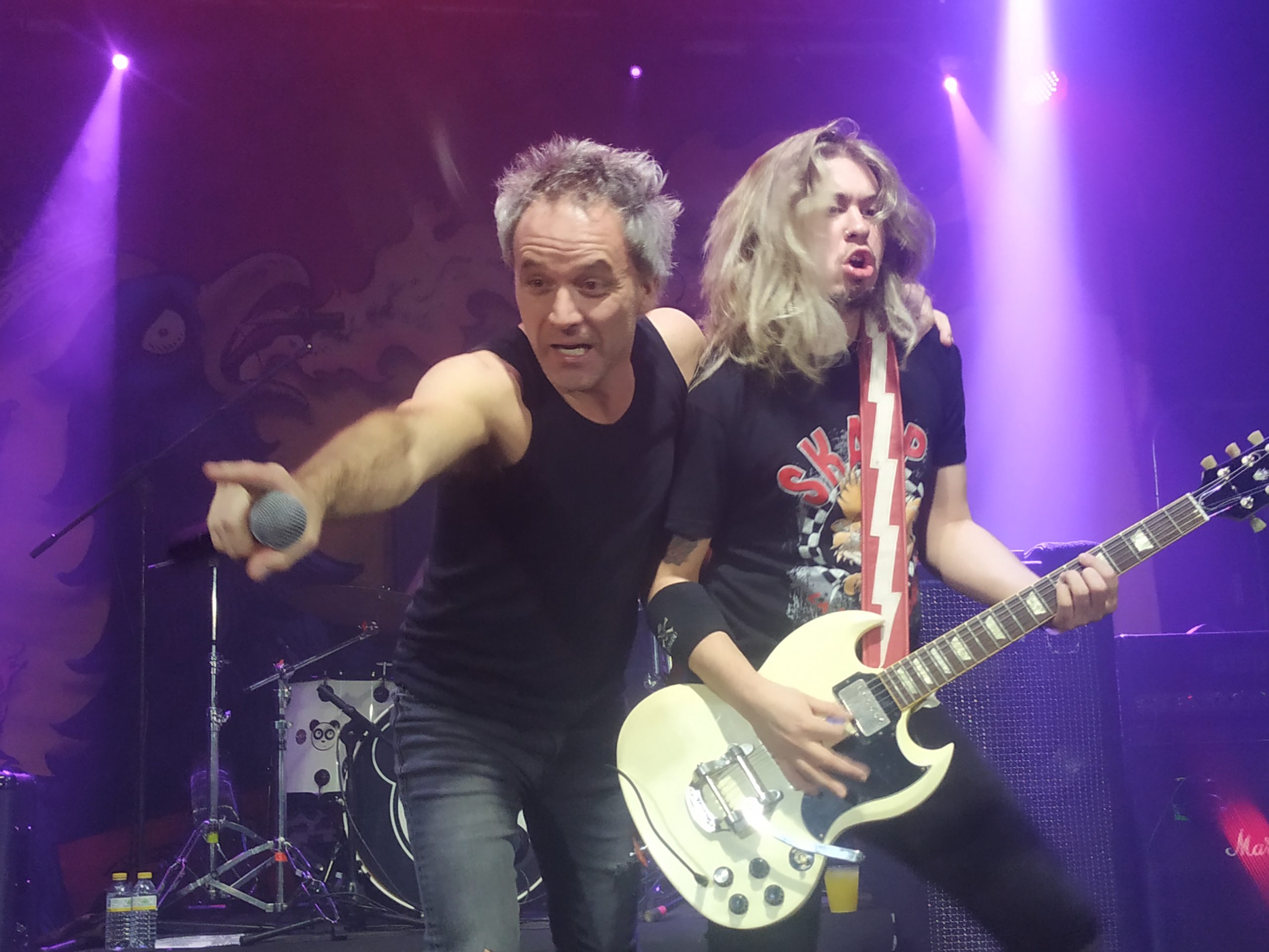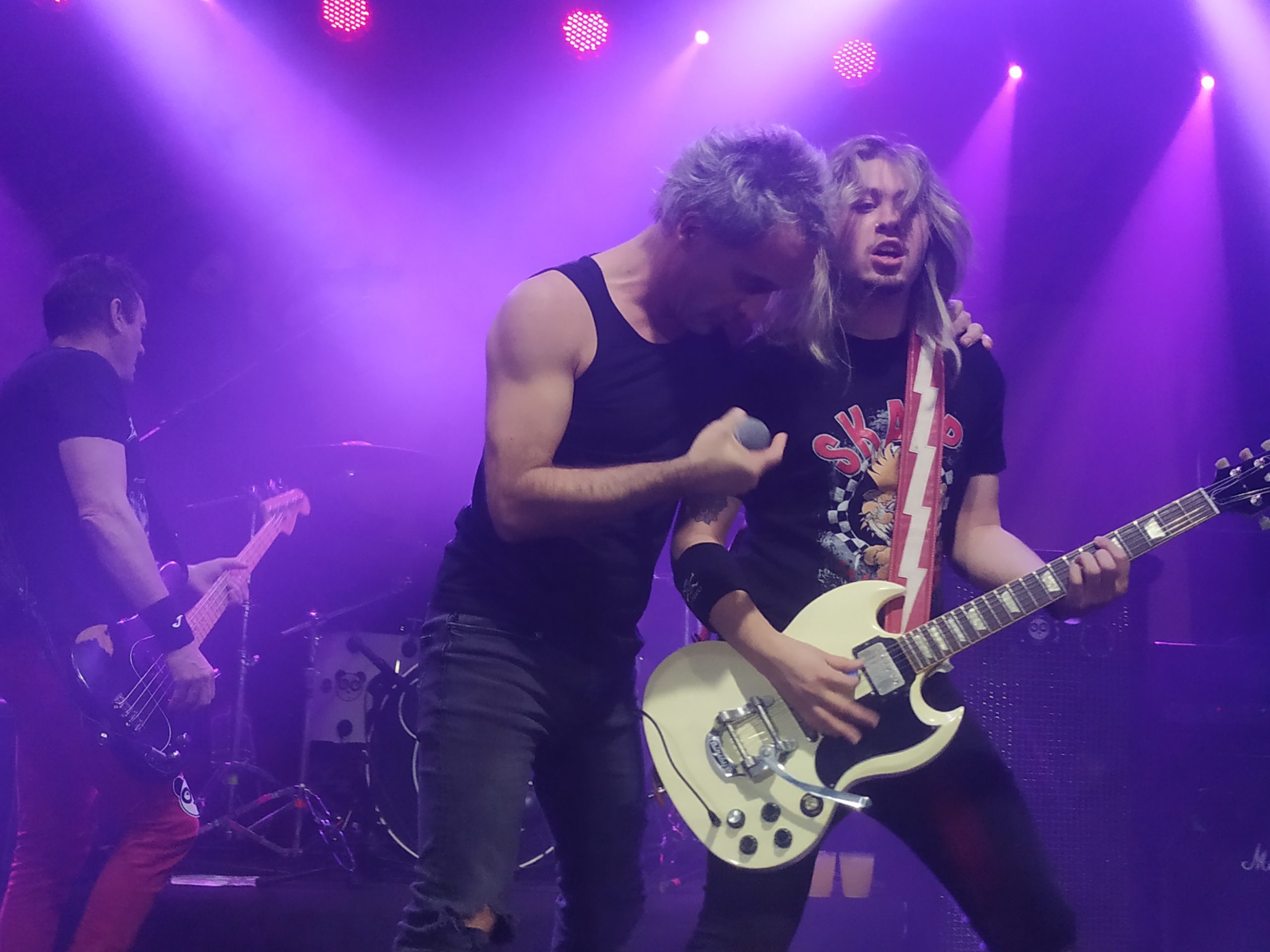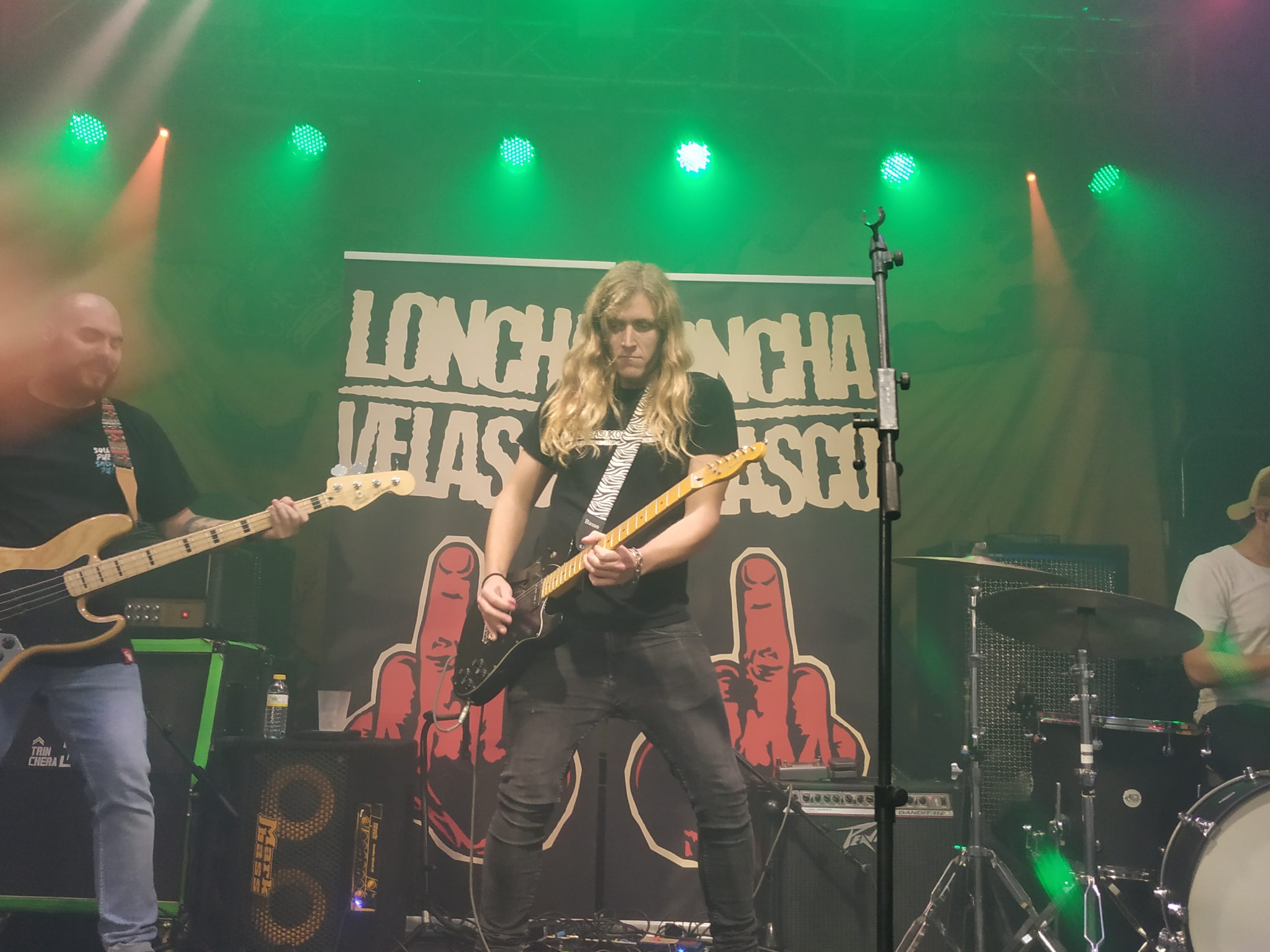 De vuelta a la calma, si se puede decir que en algún momento de la noche la hubo, tras una breve pausa, Aitor se puso la ya famosa camiseta de España para tocar “Gora España” al grito de “Goool” en su inicio. “Con el tema “Húngara la chunga” la banda se vino arriba para acompañar a su cantante. Tras una breve mención y pregunta ¿cuántos heavies hay en la sala?, más de uno que conozco no levantó la mano (jejeje), sonó “Satán (pasao de rosca III)”, con su riff de Black sabbath incluido.