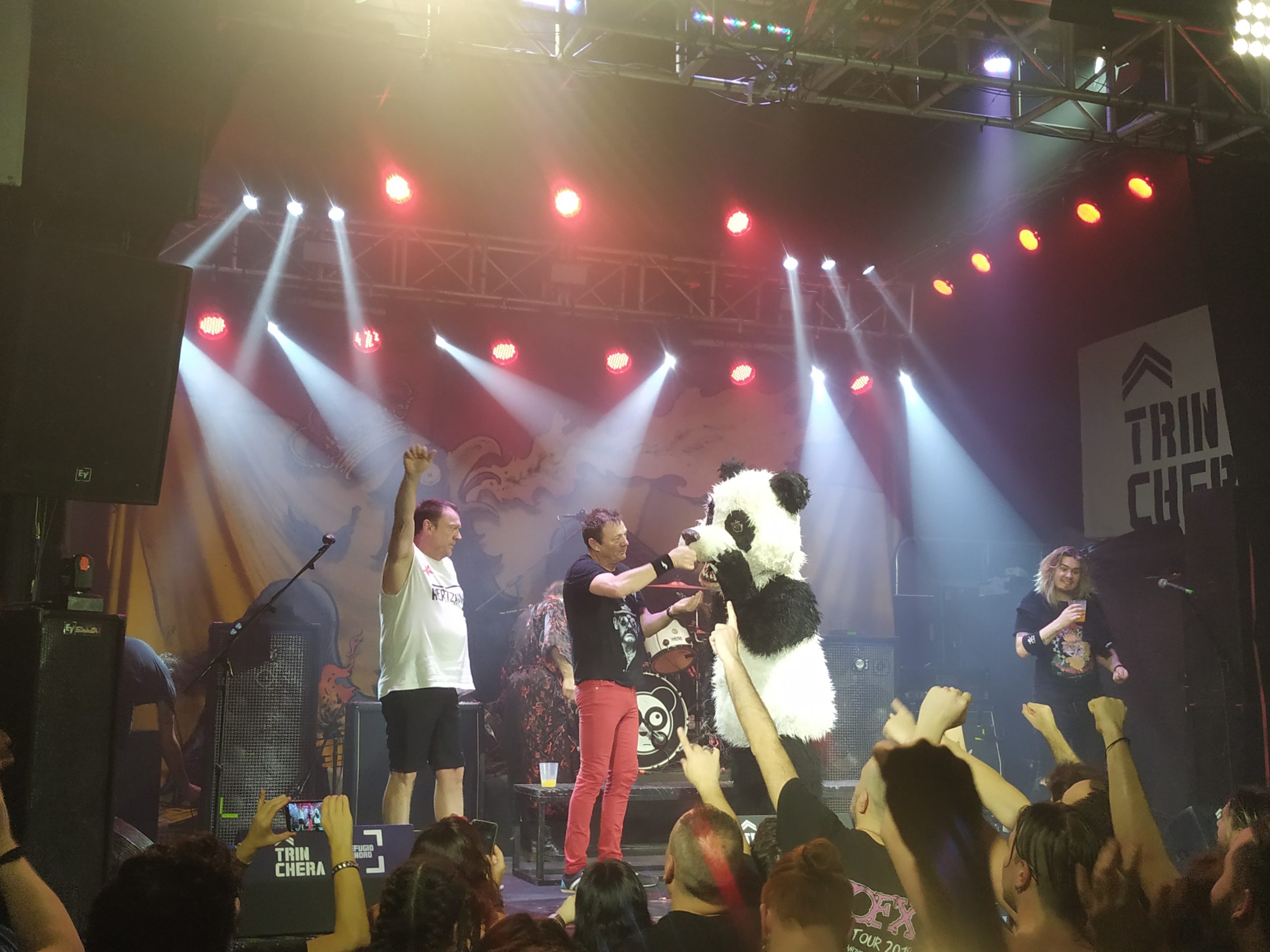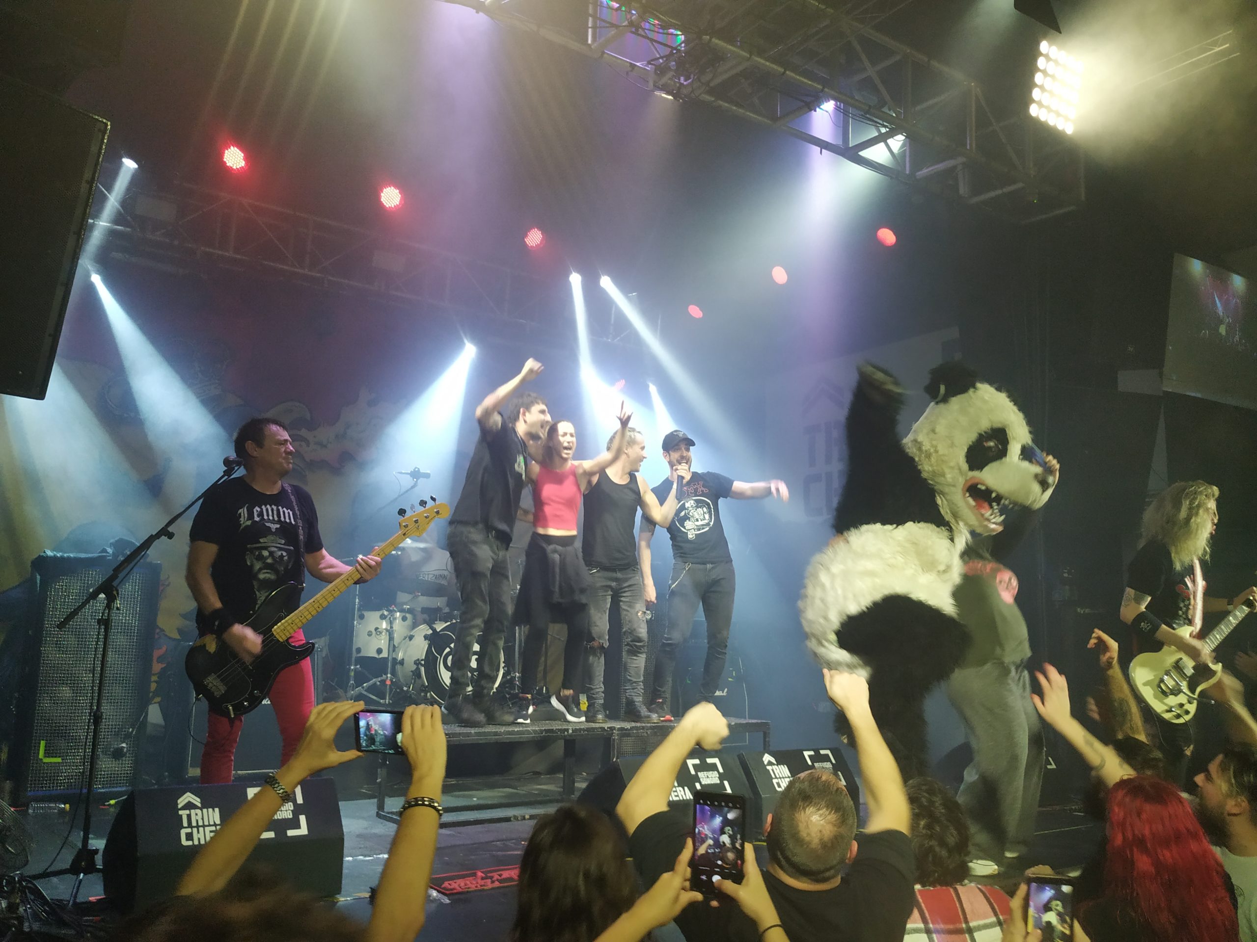 Todos sabíamos que esto estaba acabando y que faltaban su ya himnos, esas canciones que acompañarán a todas las generaciones de punks. A partir de aquí todas y cada una de las canciones fueron cantadas por el público extasiado. “Cóctel molotov al chivato del vecino”, “Eta, deja alguna discoteca”, brutal, “Modo dios”, no se puede decir nada de este temazo y para poner fin “Oso panda”, como siempre acompañados en el escenario por ese oso, que se ha convertido en mascota de mucha gente, en este momento la gente ya no pudo más sabiendo que esto se acababa y los que pudieron se subieron al escenario, siempre con un buen rollo de la hostia. Increíble colofón a una auténtica fiesta punk.