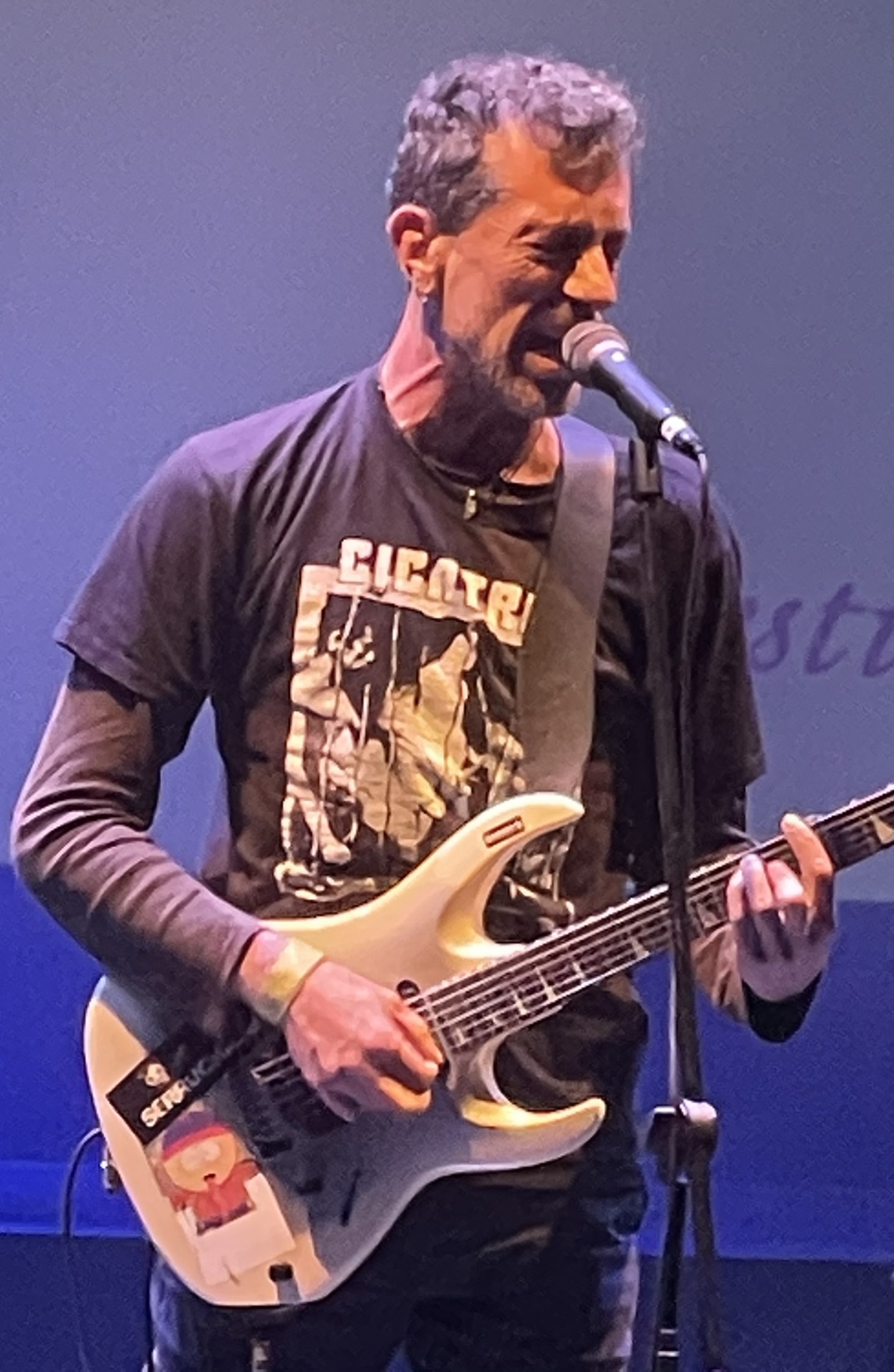 Con “God save the Queen” empezó el bloque en el que cantó sus versiones de Sex Pistols. La segunda versión en sonar fue “Mata a tu viejo” de la original “The Great Rock ‘n’ Roll Swindle”, la famosa “Anarkia” y finalizó este bloque con “Sid Vicius song” canción que tanto hemos cantado en nuestras noches de juerga y Kalimotxo … Tema que acabó con 1, 2, 3, 4, 5, 6, 7 …Mambooo.. finalizando como en un balido, esa es una de las cosas que me gusta de su forma de cantar. Balar con ciertas palabras en determinados temas, no me preguntéis por qué, pero tengo fascinación por los balidos de las cabras … jajajaja…es tan extraño como cierto, algún día espero poder preguntarle su motivo para balar, como en palabra nación de “La rebelión”.