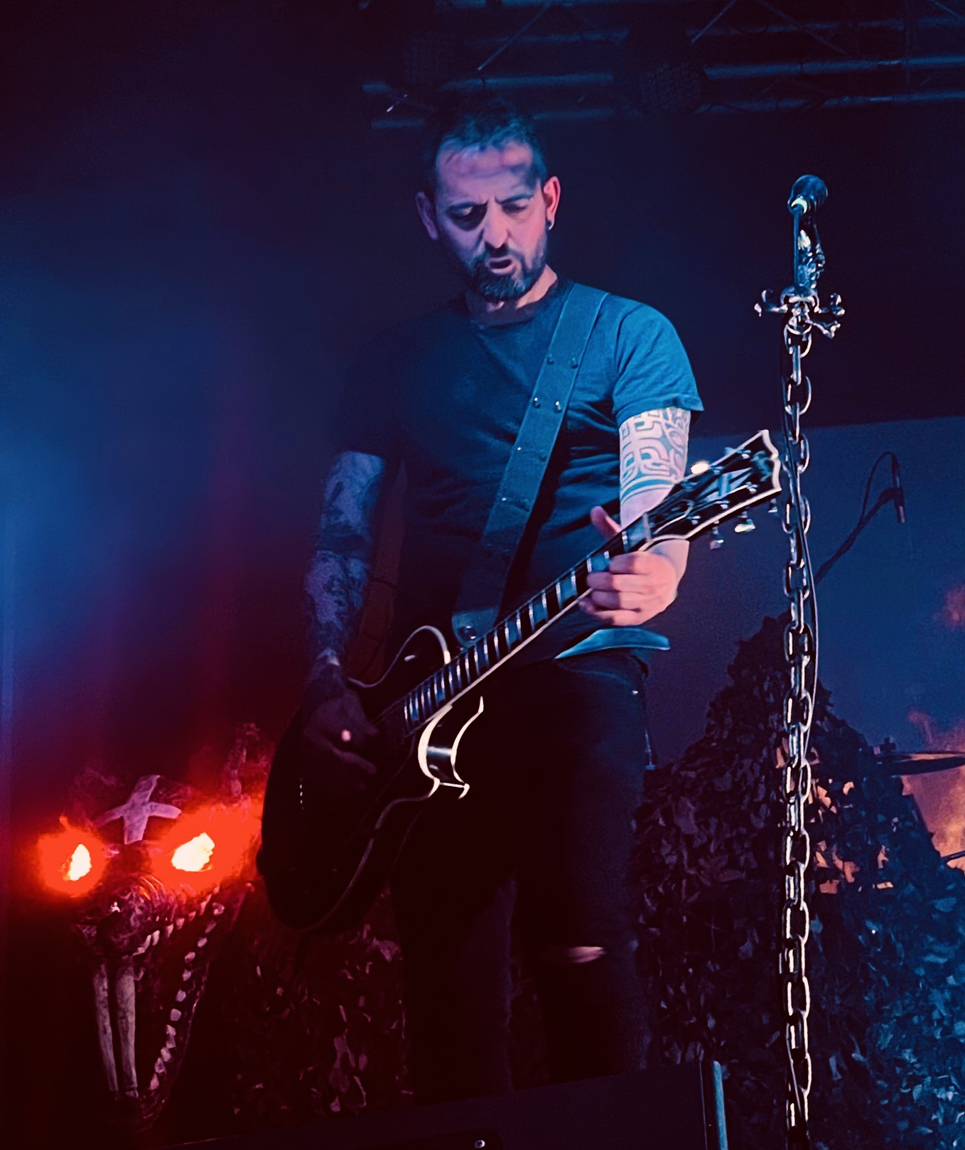 Se notó el entusiasmo con el bajo de la rata a la que llamaban “Calico», al versionar a Motörhead (Ace Of Spades) Casi me emociono de nuevo al creer escuchar Gaudium et Spes, pero no decían eso, al parecer decían: “Tenéis speed”, no se a que se referían exactamente pero a la gente parecía gustarle, saltaban como posesos. Esa rata tenía el pelo más largo que los demás era a veces difícil ver su rostro, porque no paraba de mover hacia todos los lados, pero su mirada tenía algo diferente al resto, resultaba más amigable, a veces incluso daba la sensación de que su hocico se torciese esbozando lo que se podría interpretar como una sonrisa; siguió disfrutando con “Dios salve a Ronnie Biggs” y con la llegada de los 4 jinetes del apocalipsis y su “Santa Calavera” como una nueva era, en la que los que a hierro sobrevivan serán “indestructibles”