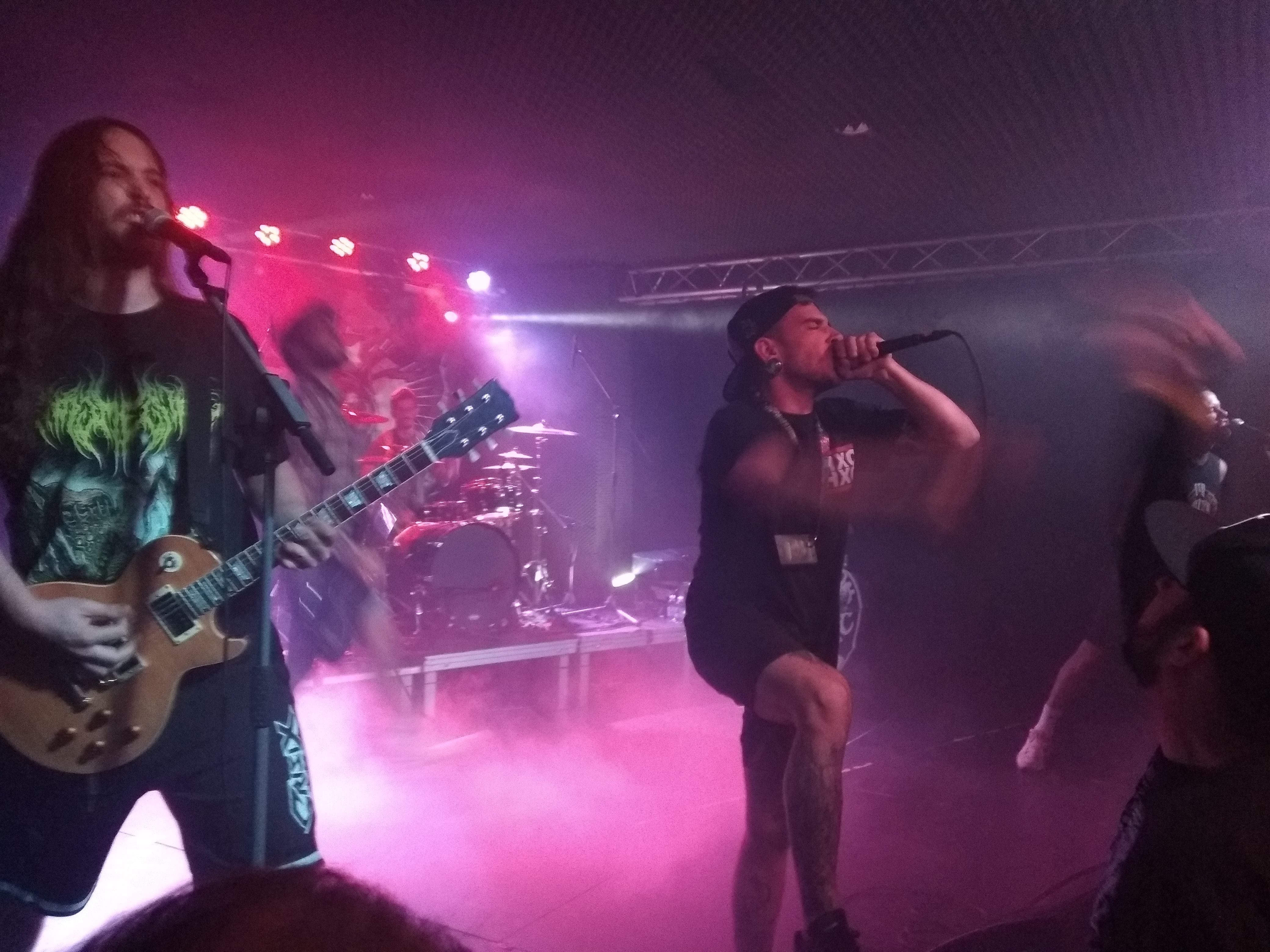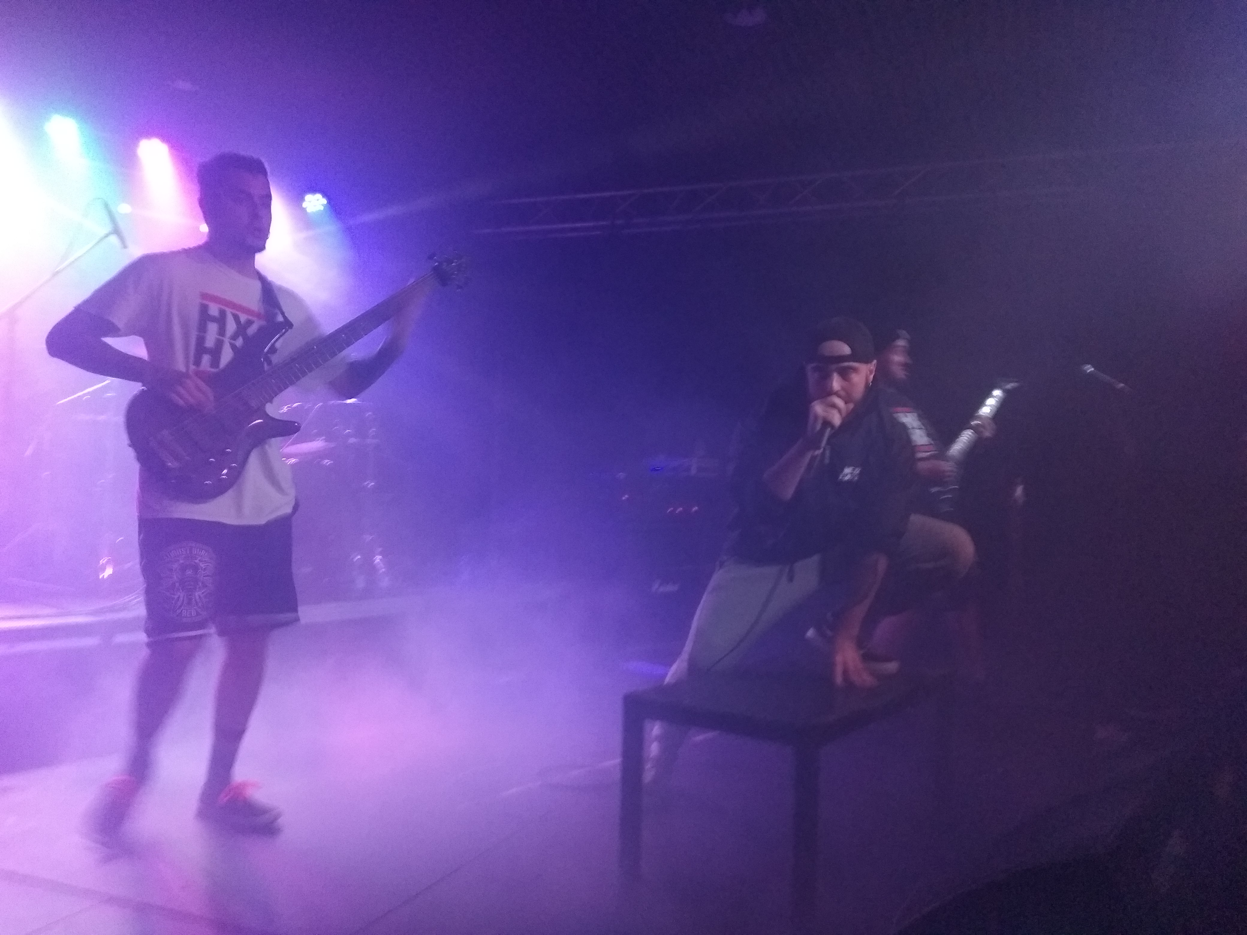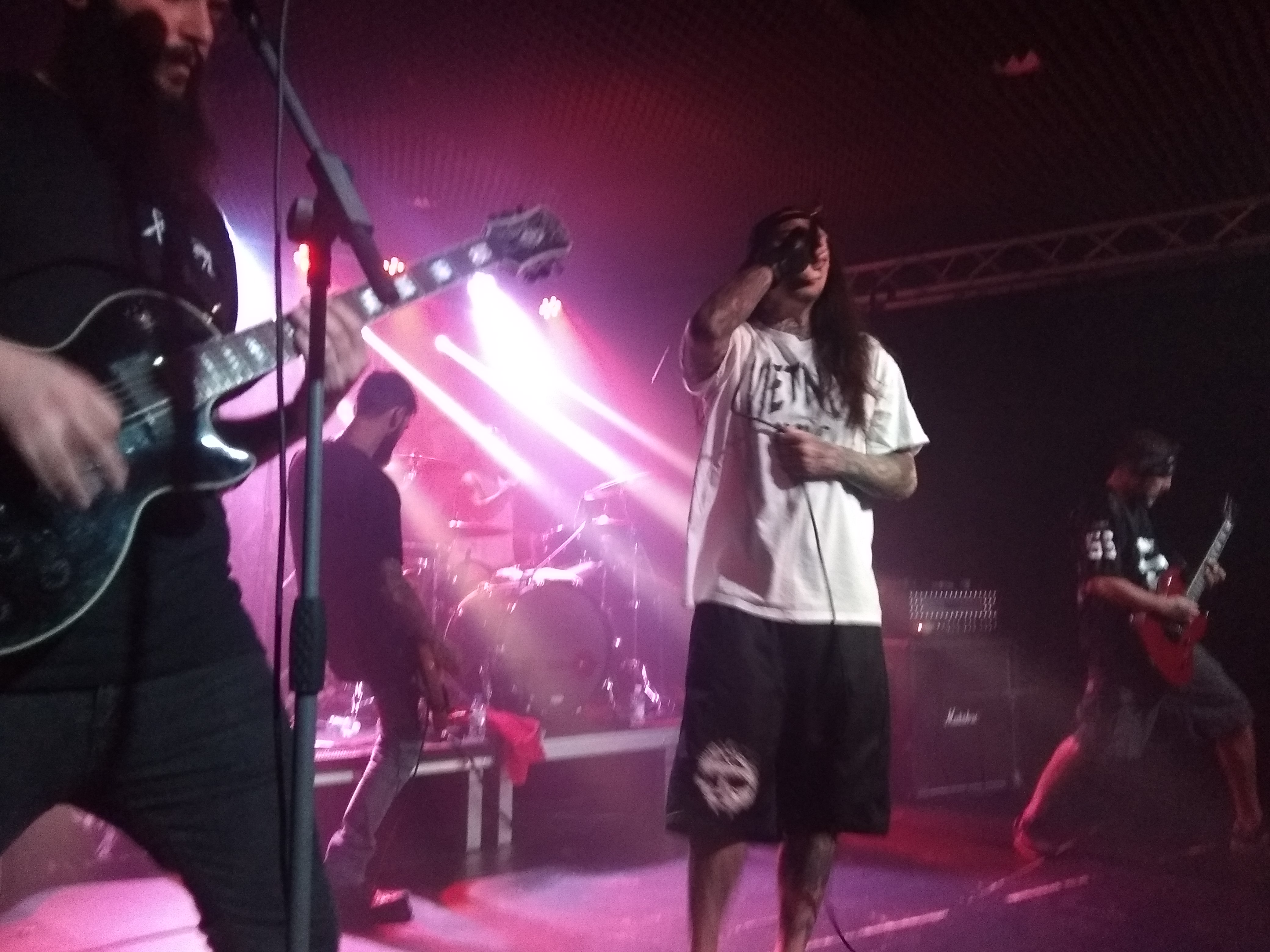 Los siguientes fueron We Exist Even Dead. Ay, qué os voy a contar de ellos. Los conozco desde hace tiempo ya y, aparte de ser unas maravillosas personas, como grupo son una auténtica pasada. Amigos que no los conocían fliparon con ellos. Dieron un espéctaculo digno de lo que son, grandes personas. Todos ellos con camiseta de Hardcore Hits Cáncer, lo que les honra aún más, estos catalanes dieron todo lo que pudieron y más aún con su mezcla de Groove metal y metalcore. Chicos, necesitamos veros más. Nos dejaron con ganas de mucho más.