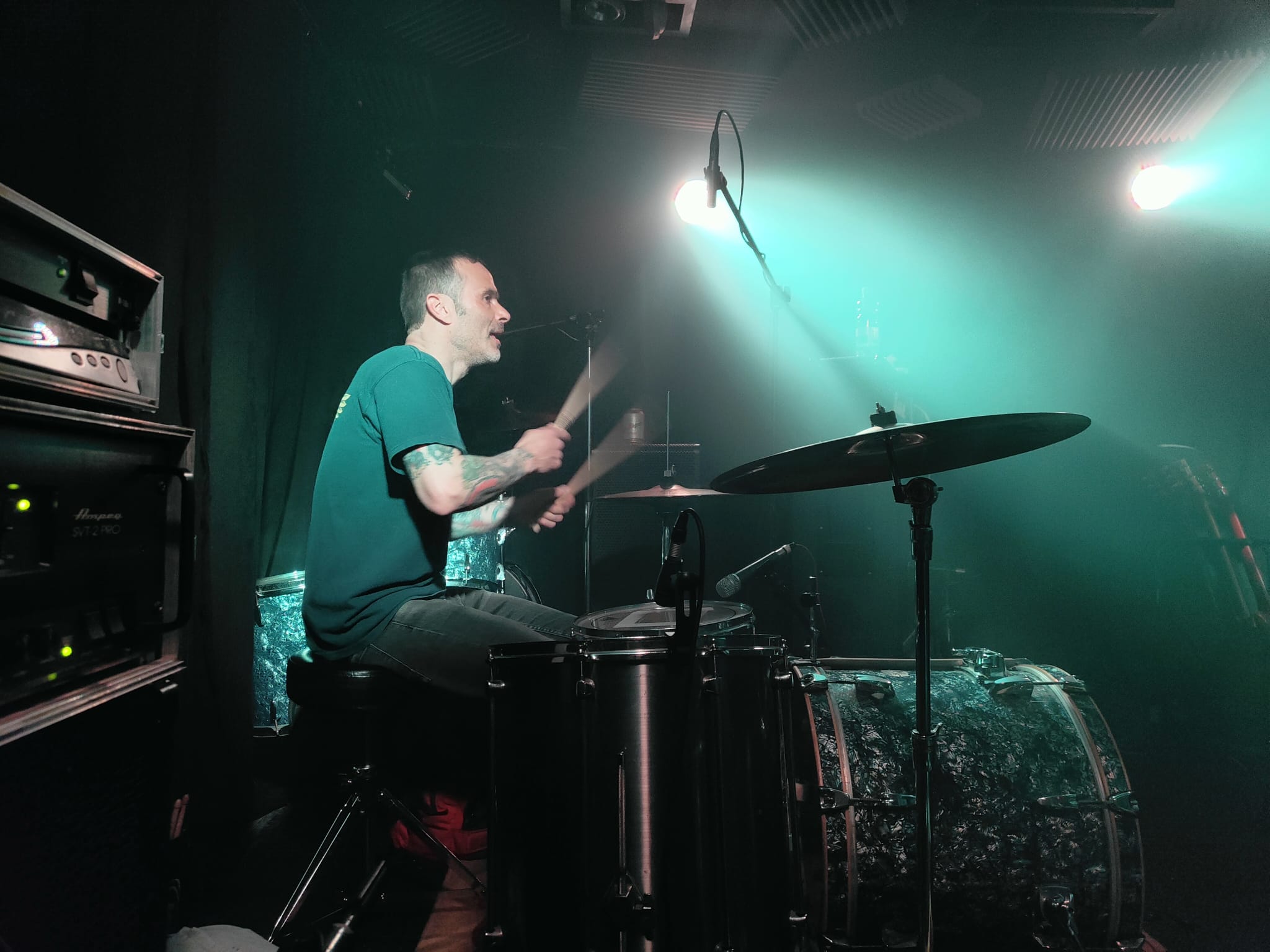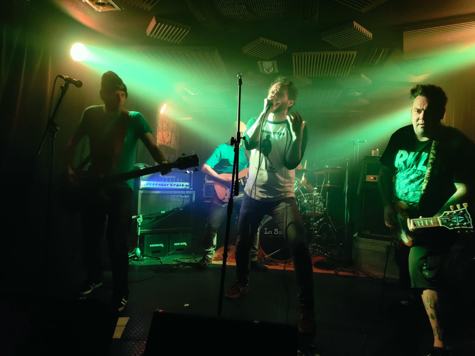Tras dos canciones con algún problema de sonido (realmente durante el primer tema la guitarra sonaba excesivamente baja), aquello comenzó a sonar bien, y la peña empezó a animarse cada vez más. El público estaba entregadisimo. También tengo que decir que yo, personalmente, y a pesar de que me lo pasé genial, no conseguí identificar ningún tema. Llamadme rara. Eso sí, lo que sí conseguí fue que me pitaran los oídos durante dos días.