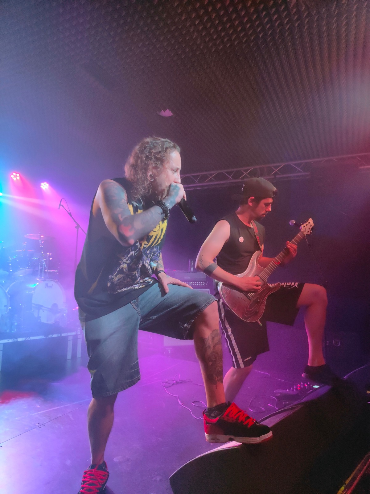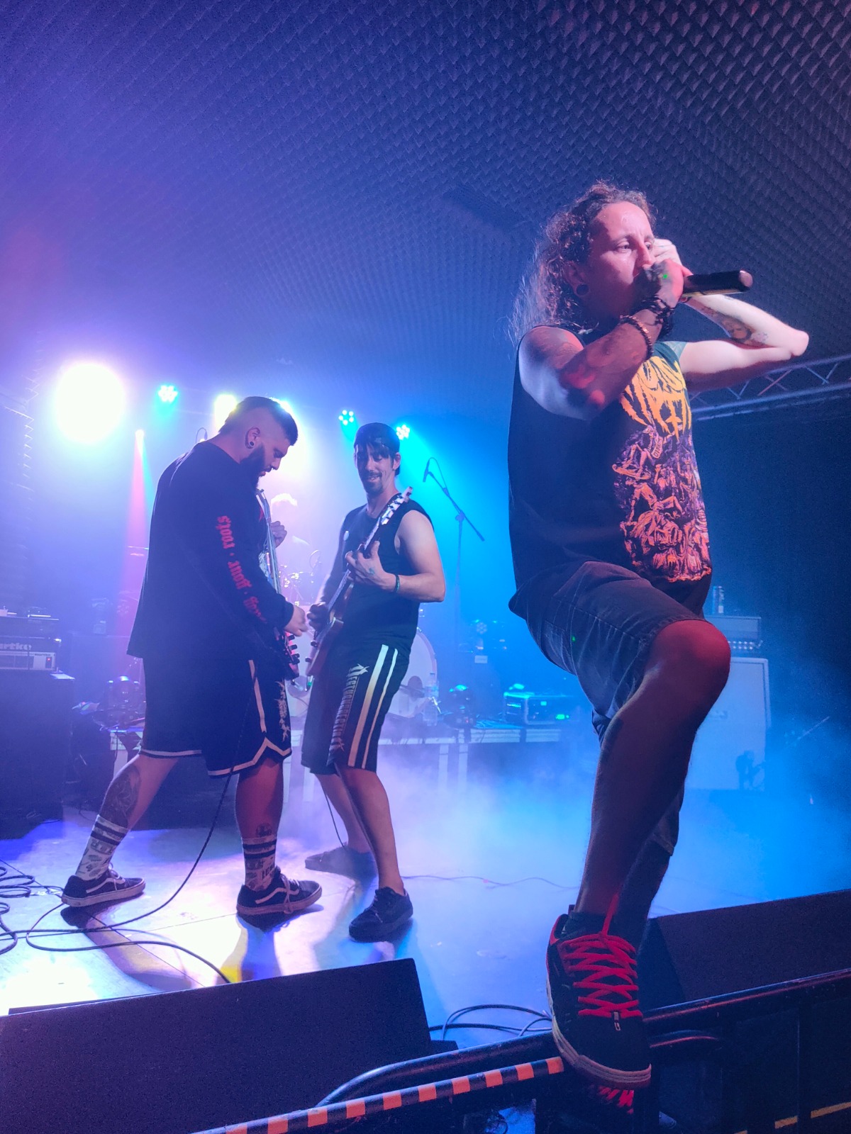 Mesenktet fueron los encargados de abrir el evento, en un debut que dejó impresionados a todos los asistentes. Con una intro bastante atípica para este tipo de conciertos, sonó el Fary, y tras esta comenzaron a arrasar con un setlist corto pero contundente, con un público entregado desde el primer momento y unos músicos ya conocidos por estos lares y que lo dieron todo, absolutamente todo. Sólo 6 temas que dejaron a todos con ganas de más, en los que, además del potente metalcore de sus temas propios, brilló una versión del “Idols” de Parkway Drive en castellano, y un último tema, “Llucha” medio en castellano medio en asturiano en el que tratan el tema de la oficialidad de este, tan comentada últimamente. Y es que con esa fuerza en el que fue su primer concierto, estamos totalmente expectantes con lo que pueda llegar a hacer esta nueva banda asturiana. Gran sonido, mucha conexión con el público (incluso su vocalista, Alberto Guerra, bajó del escenario durante un tema), y muchas ganas de que todo saliera perfecto.