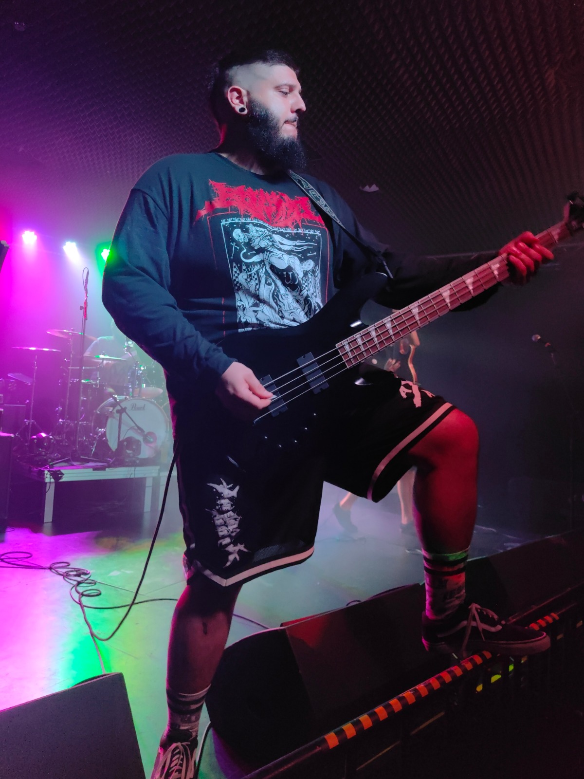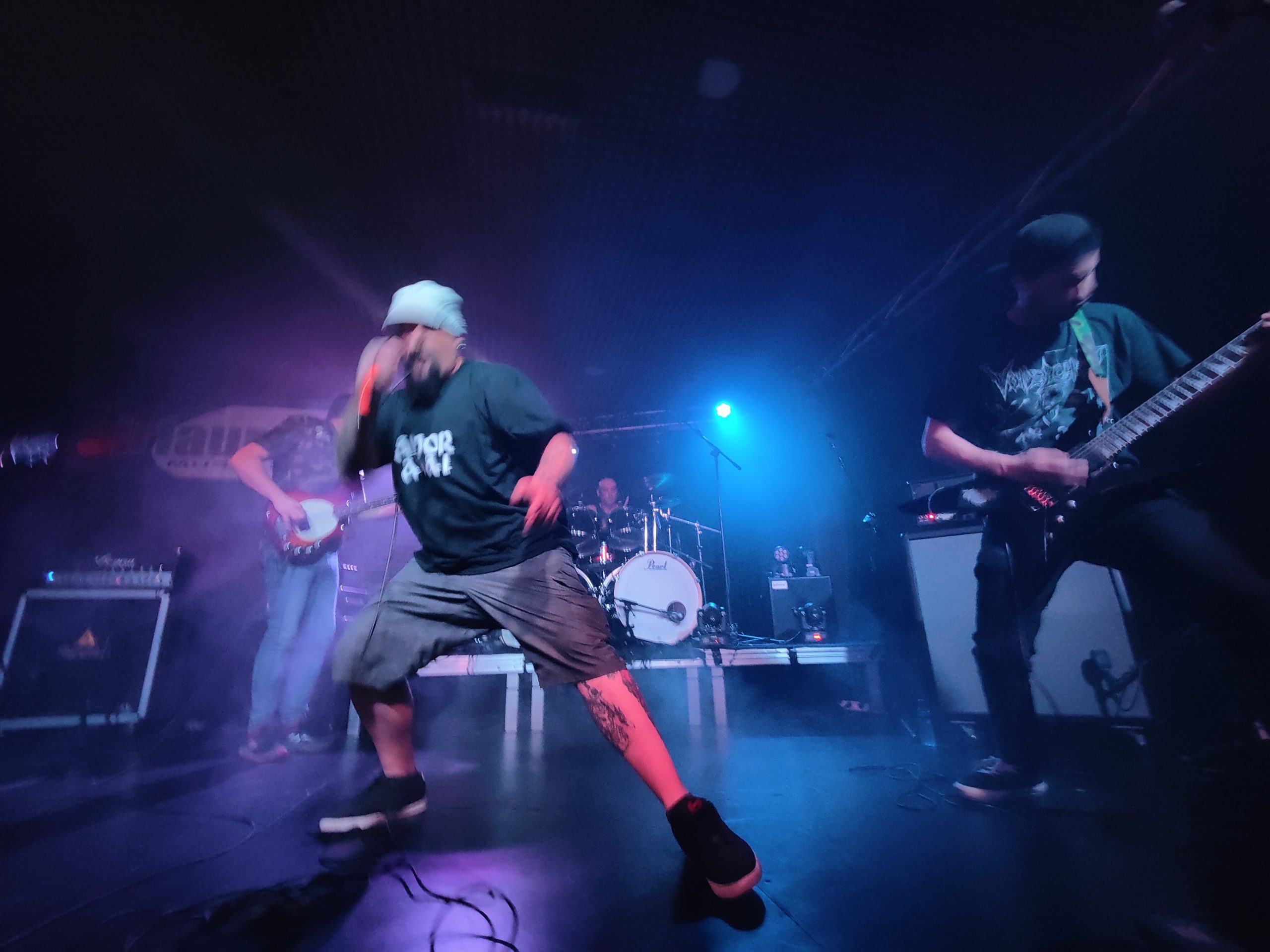 Y llegamos al tercer y último grupo, con muy pocas ganas (pocas ganas de que aquello acabara, que a ellos estábamos deseando verlos). De hecho, todo esto pudo tener lugar gracias a ellos, ya que era su gira. Void’s Legion se presentaron con una indumentaria oscura y totalmente “doom”, para deshacerse de ella antes incluso del inicio del concierto, y empezar por todo lo alto. El sonido, sin palabras. El grupo, irradiando una potencia que nos dejó totalmente absortos. Y unos temas, 9 para ser exactos, que emanaban calidad en cada acorde. Me parece increíble que esta banda lleve sólo desde 2019, y con una pandemia en medio, hayan conseguido llegar a este nivelazo en tan poco tiempo. Un death metal particular el suyo, con temas poco repetitivos y muy dinámicos, lo cual hizo que se nos hiciera demasiado corto tal vez.