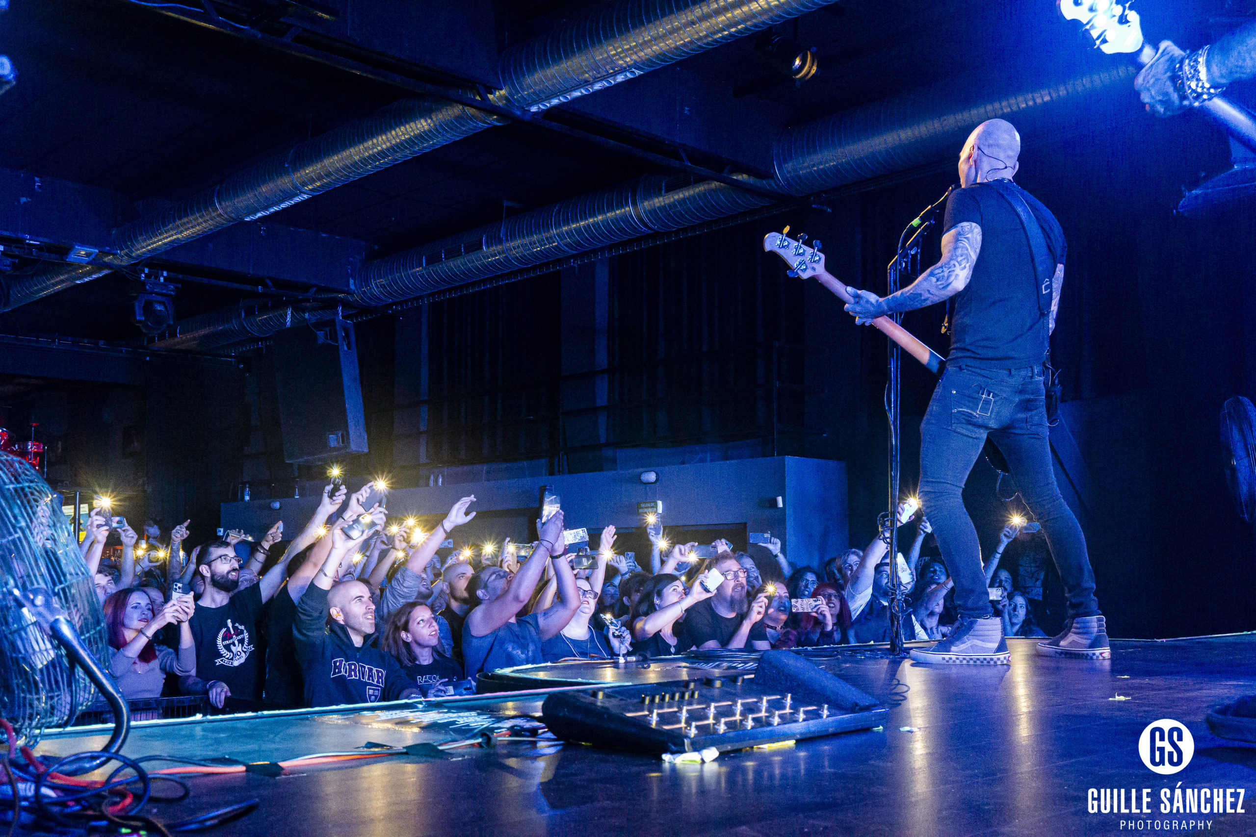 Podría decirse que la actuación se dividía en varias partes: en una primera parte, era esa sucesión de canciones en las que alternaban las canciones de Elegía con las de sus discos pasados (aunque tengo que admitir que noté que primaban las de su anterior disco de estudio Vulcano). Creo que sobran las palabras para describir esto: este cuarteto no necesita muchos detalles para decir que, con tantos años a la espalda y tantos kilómetros recorridos, saben de sobra como moverse, interactuar con el público y hacerlo todo para que no falle absolutamente nada. La contundencia y la técnica de Manu a la batería es algo fuera de este mundo, Jorge y Antonio hacen maravillas con sus guitarras y Carlos es ese frontman que es una apuesta segura para fichar para tu grupo si necesitas a un cantante y bajista que lo haga todo.