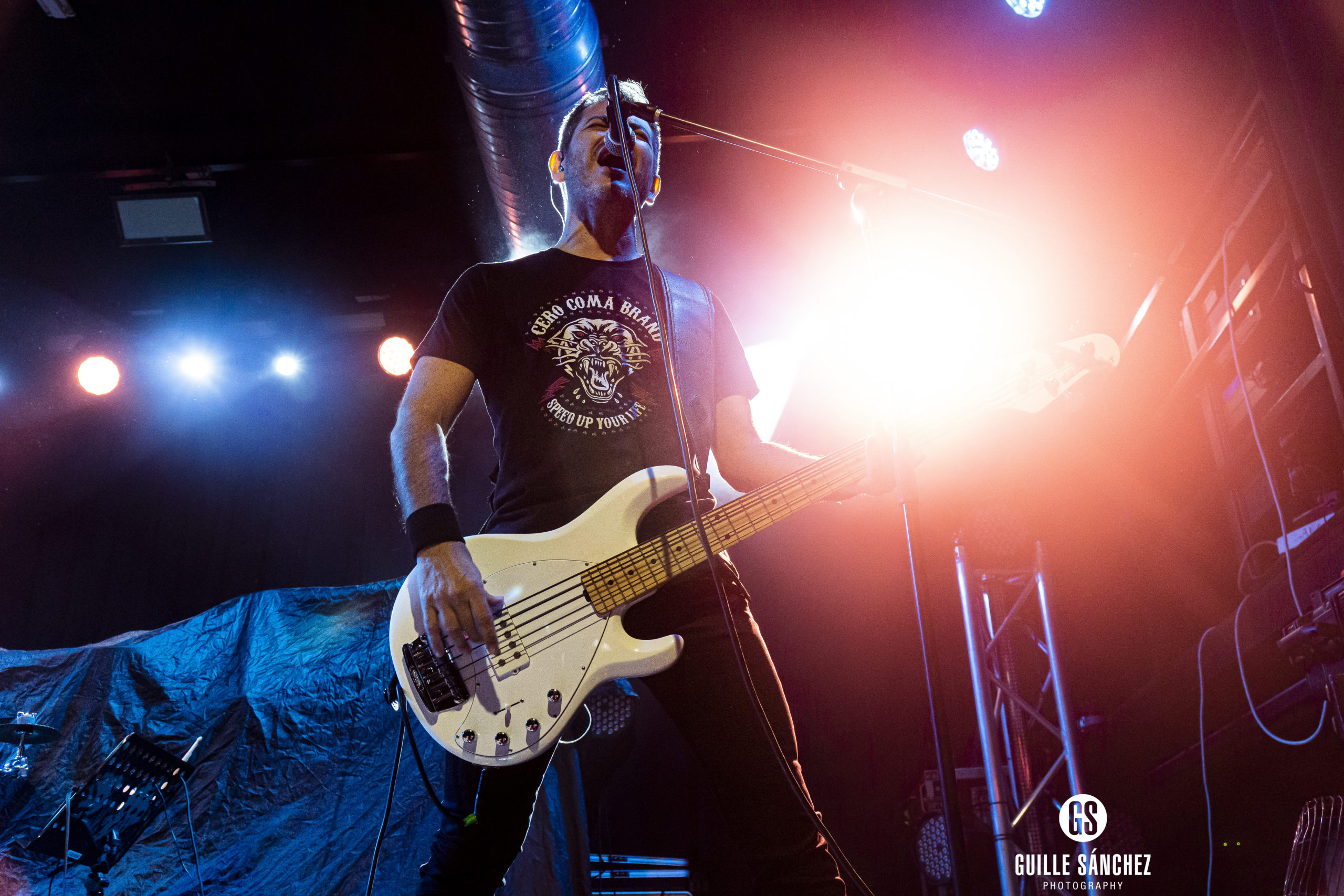 Tras el rápido cambio de equipo pertinente, llegaba el momento más golfo con el hard rock de Contrabanda. Al igual que antes, contaban con un tiempo corto, aunque la suerte es que se conocían al público de la ciudad de lujo, ya que no era la primera vez que se dejaban caer por allí. Ya con una sala que cada vez se iba llenando de más gente, llegaron con la presentación de su último trabajo (Ingrávido) alternando con canciones de sus otros discos que, desde el minuto uno, ya recibían el apoyo de sus fans al no dejarse ni una sola letra sin cantar. Algo que siempre me ha fascinado de este grupo cuando sale al escenario es la presencia que tienen: Javi sin duda alguna es un frontman de los pies a la cabeza por sus movimientos y su voz dignos de una leyenda del rock junto a un engranaje de compañeros que hacen que funcione una maquinaria que vaya a mil por hora para poner a la gente patas arriba, llegando a saltos e incluso hasta bailes (en los huecos que fuese posible, claro está). Con el contraste de las canciones de ese último disco sobre la mitad de su concierto, podría decirse que ese fue el momento en el que tomar un poco de aire, pero no dejaron mucho para el respiro para terminar por todo lo alto con esos sonidos más golfos. Podría decirse aquí lo mismo que antes, una actuación de corta duración te deja esa sensación de querer más y de querer seguir disfrutando, pero los tiempos hay que cumplirlos y, ya lo dice el dicho también: lo bueno, si breve, dos veces bueno.