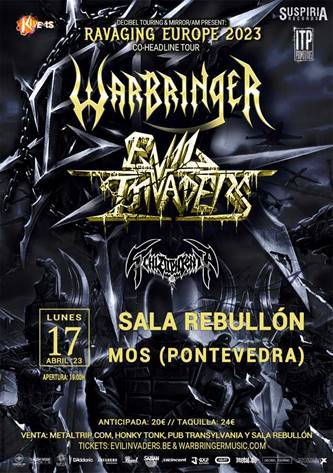 Una extensa Gira europea de Evil Invaders y Warbringer que visitará España en cinco ciudades durante el mes de abril de 2023, de las que Kivents trabajará tres conciertos.