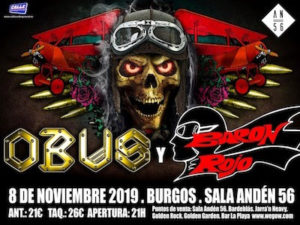 OBÚS ofrecerá un par de conciertos, en Burgos este viernes 8 de noviembre y en Valladolid el viernes 14 de febrero, junto a BARÓN ROJO, otro de los grupos legendarios del rock patrio, con los que ya compartieron cartel hace unos meses en Madrid. También participarán en el festival Escena Rock en Madrid. 2020 será para OBÚS un año de intensa actividad en directo. Pronto anunciarán nuevas fechas!
