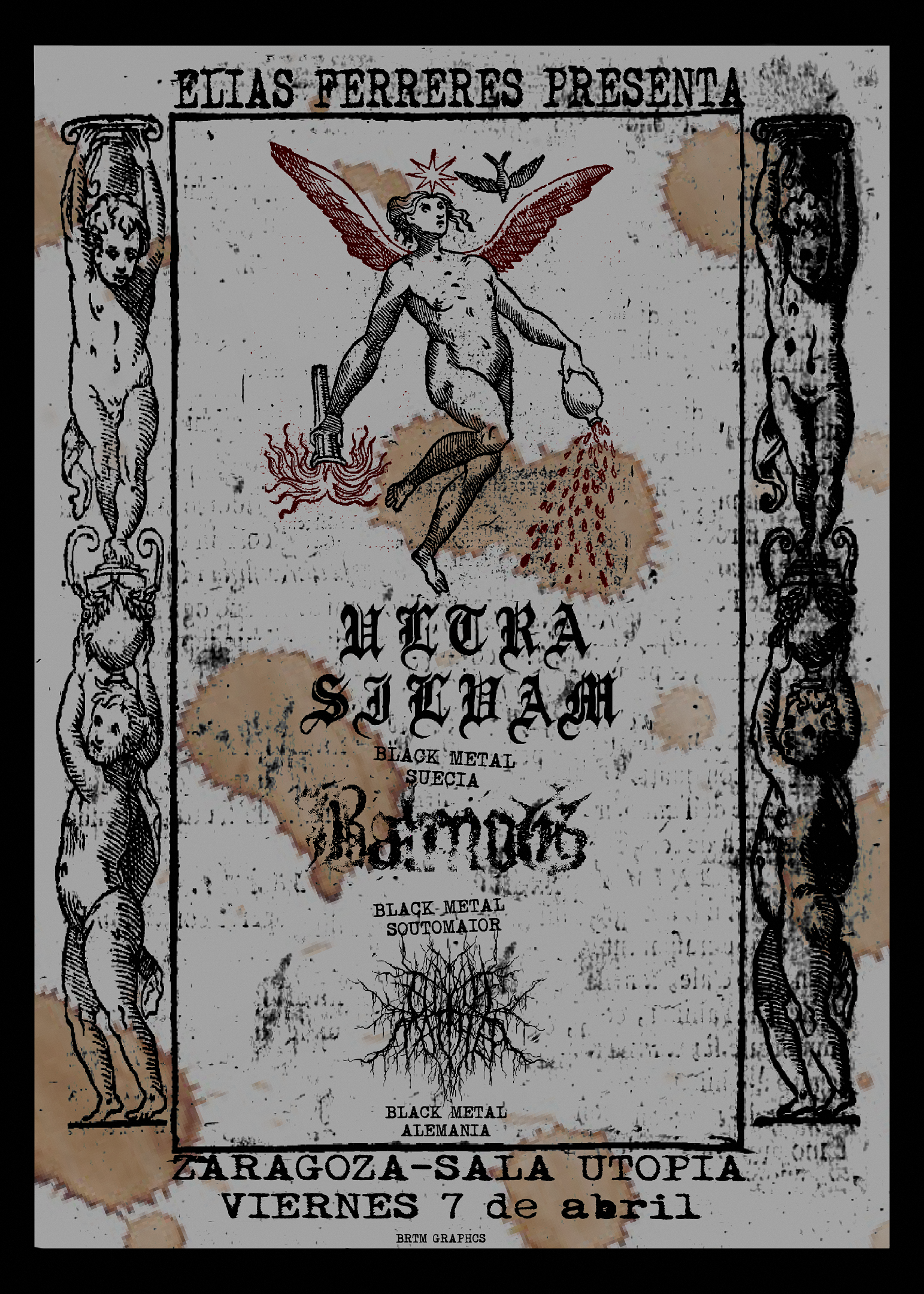 Triple cartel de pavoroso black metal para el 7 de abril en la sala Utopía de Zaragoza y el día 9 en la Zowie de Barcelona. Desde Suecia, Ultra Silvam descargarán su furia junto a Balmog, una formación que no necesita presentaciones por estas tierras, y también los germanos Gleichmacher. ¡La sangre y la sombra se apoderarán de nosotros gracias al promotor Elias Ferreres!
